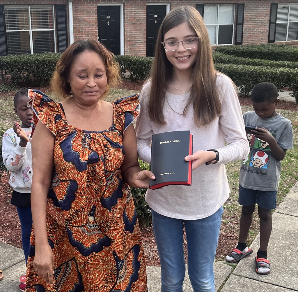 I gave a Kinyarwanda Bible to a refugee family today. The dad was from Burundi and the mom was from Rwanda. They have four children. About five months ago they came from a refugee camp in Burundi where all their kids were born.