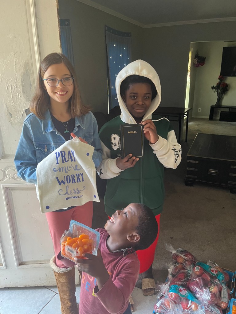 Their family now lives in a house. Imani and her two kids moved in to help take care of her mom. We counted at least 12 people living there! When we brought in some donated food, they were really happy. They asked my dad to come once a month to pray with them and bring them more food.