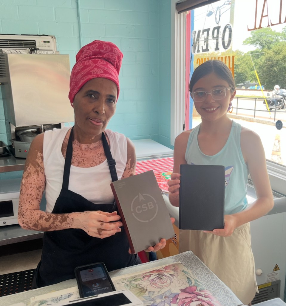 My dad likes to go to coffee shops and sometimes I go with him. One day, we went to a good one in Clarkston that is Ethiopian. Ms. Ayana serves traditional Ethiopian coffee ceremonies there, and it’s a lot of fun. She burns frankincense and everyone is invited to gather together and drink these little cups of coffee.