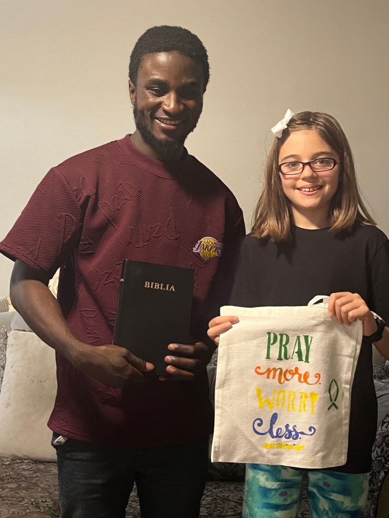 After I gave them the Bible, my dad prayed for them. They have some problems because they still haven’t found a job. Desiree is trying to get a job at a chicken factory. They also have a daughter with special needs and they asked my dad to help them with that.