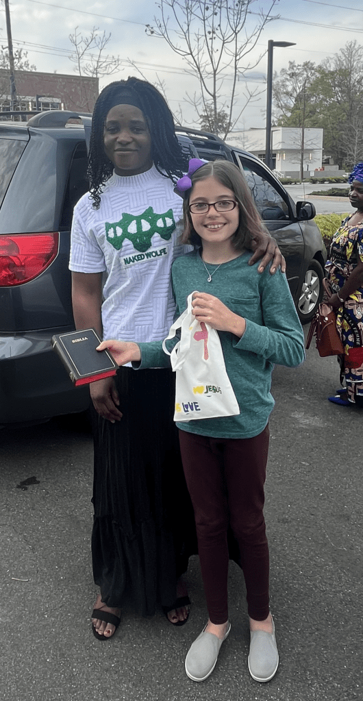 I didn’t know people could want Bibles so much that they would want to move to Clarkston just to get one! I’m glad we went to Jonesboro to meet Azizi and give her that Bible. Now she can read the Bible and teach her kids about Jesus.